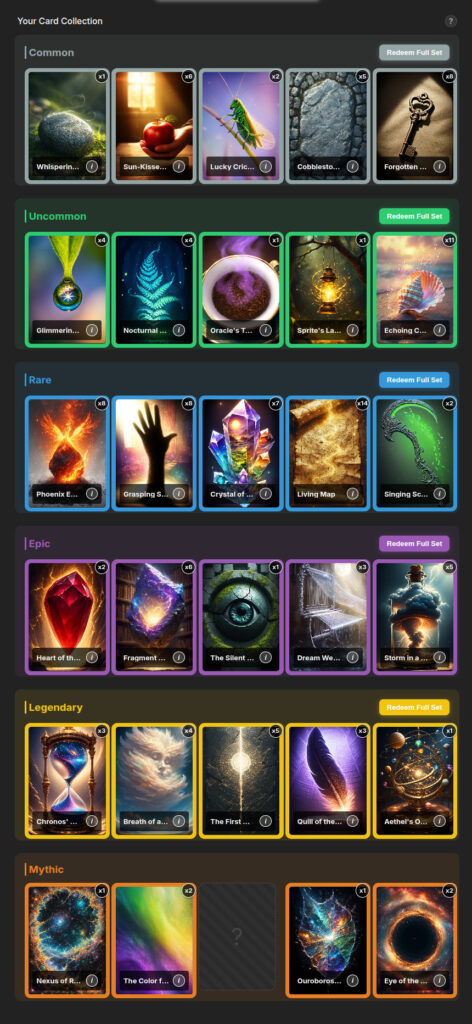 - Mythic (175,000 por carta, 750,000 por el set de cartas)
